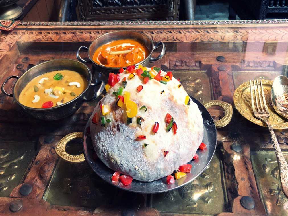 ぷっくりカラフルなチーズナン!?ピンクのオリエンタルな空間で味わうカレー