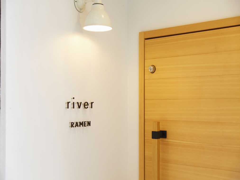「river ramen」があるのは、四条木屋町近くの小さな路地。カフェや一軒家レストランにも見える、おしゃれな外観が印象的です。通りから中が見えないので、女性のひとり客も気兼ねなく楽しめそう。