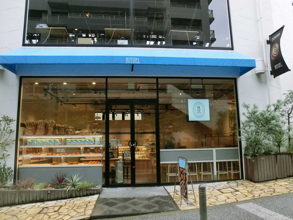 2018年2月にオープンした「リチュエル代官山」。代官山駅から徒歩5分、アイコンカラー水色の看板とガラス越しに並ぶ焼きたてパンを発見したら到着!