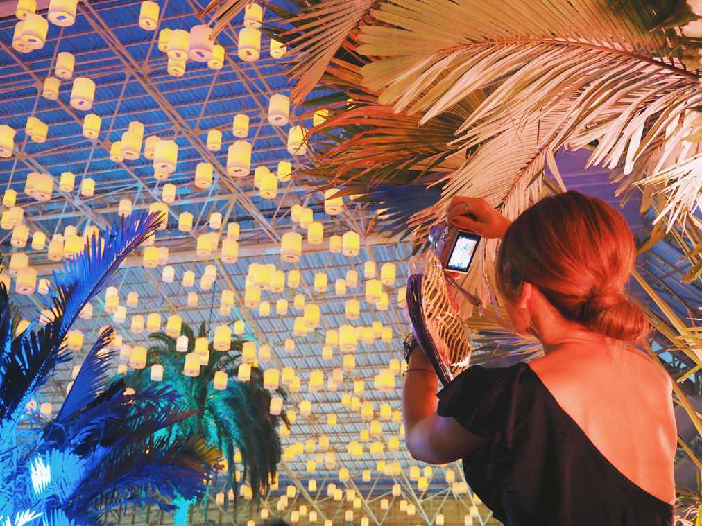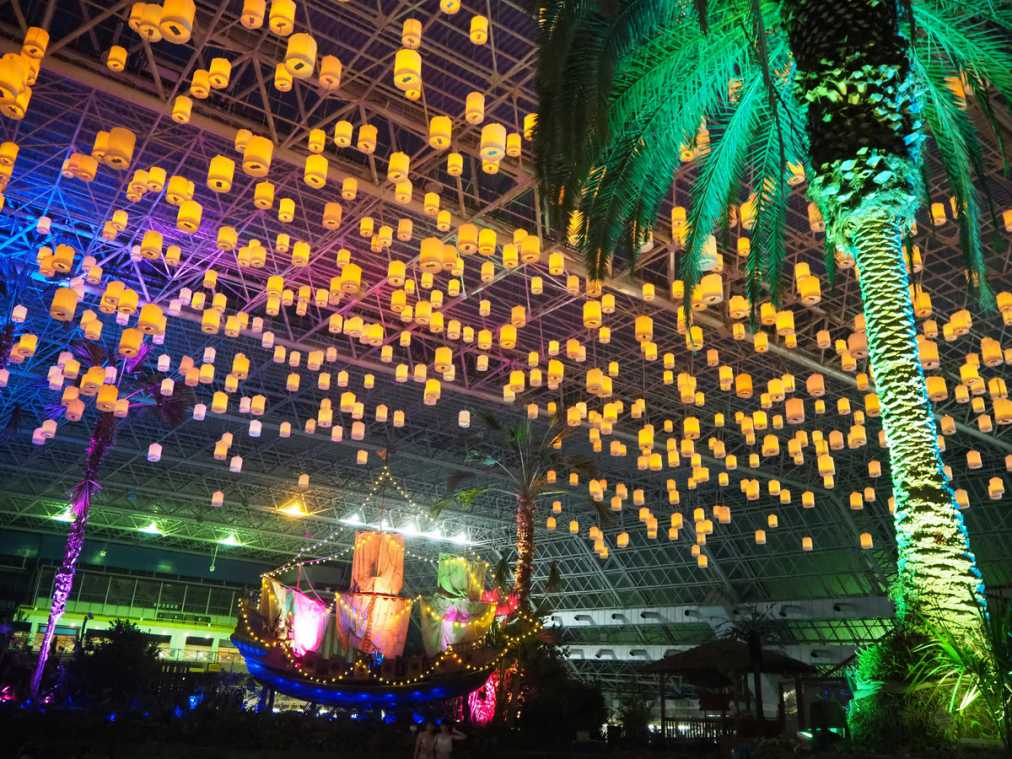 パームツリーウェイを抜けた先にあるティキガーデンには、タイで話題のお祭り「コムローイ」をイメージしたライトアップがあります。たくさんのランタンがひときわ目を惹く美しいスポットです。