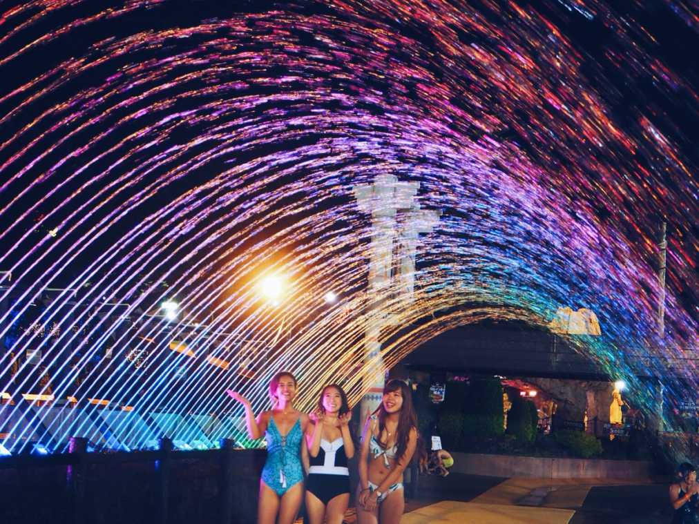 韓国の人気スポットである月光レインボー噴水をイメージした水のトンネル。トンネルは誰でもくぐり抜けることができ、まるで虹の下を歩いているような気分になりますよ。