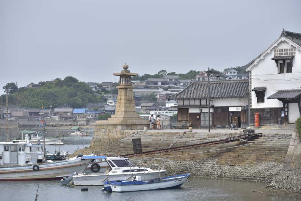 鞆の浦へは、JR福山駅からバスに乗って約30分。古来より「潮待ちの港」として栄えた港町で、江戸時代の港湾施設や古い町家が当時の姿のままで残されています。船着場の先に立つ常夜燈は、江戸時代に建てられた鞆の浦のシンボルです。