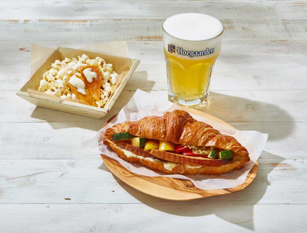 この「ビアガルデン・クロッサンド」1種と、「ヒューガルデン」「トリュフポップコーン」「ドライマンゴーのクリームチーズのせ」がセットになった「ビアガルデン・クロッサンドセット」1500円 のお手軽メニューも登場。
