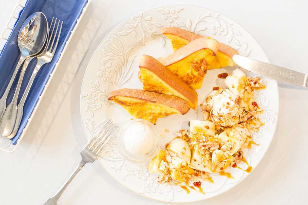 卵や牛乳で作るのが定番のフレンチトーストも、なんとヴィーガンスイーツに!豆乳パンを使用し、卵や牛乳は不使用なのにしっとりと仕上がっています。
