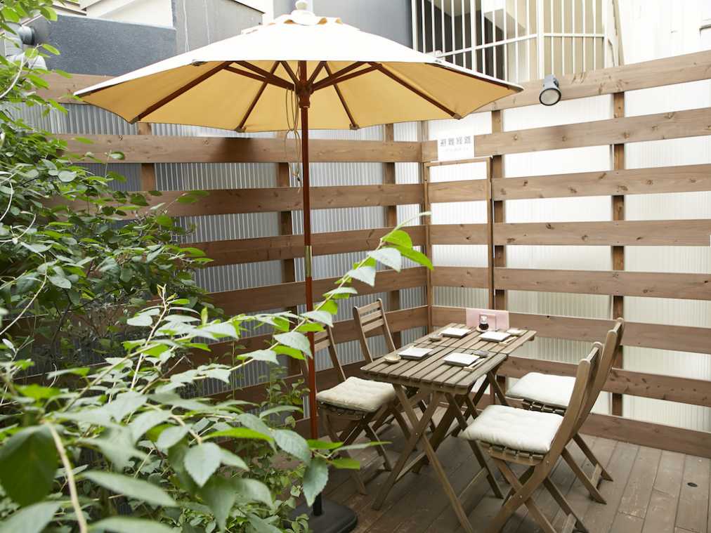 1階にはライブキッチンのカウンター席とテーブル席のほか、テラス席もあります。こちらはビアガーデン気分で楽しめると、女子会などのグループ客に人気のテラス席。