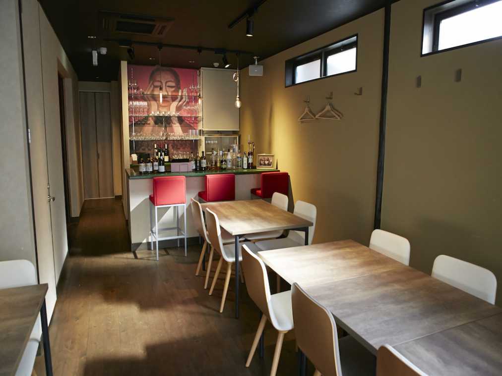 2階席にはバーカウンターがあり、飲み放題付コースのグループ客におすすめ。奥には個室もあります。お手洗いはバーカウンターの裏に設置され、広い洗面台がありホテルのようにラグジュアリー。アメニティも充実した自慢のトイレで、女性客への配慮が伺えます。