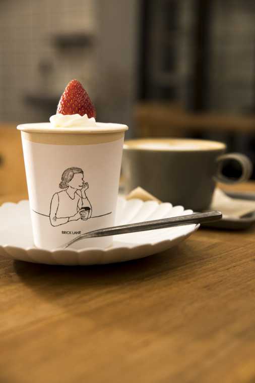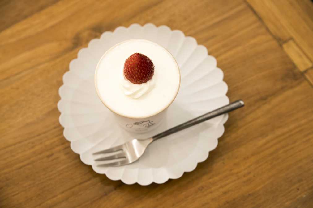 週末(土・日曜、祝日)限定で、かつ数量限定の人気メニュー「カップショートケーキ」(540円)。週末の朝には多くの人がこのメニューを求めてやってくるんだとか。クリームの上にイチゴがちょこんと乗ったかわいらしい見た目。オーナーさんが子どものころ、友達にケーキを渡す際にカタチが崩れないようにとかわいい紙コップに入れて作ってみたのがはじまりなんだそうです。そんな一風変わったショートケーキは、きび砂糖を使ったスポンジのやさしい甘さが際立ち、ラテやコーヒーにもぴったり。