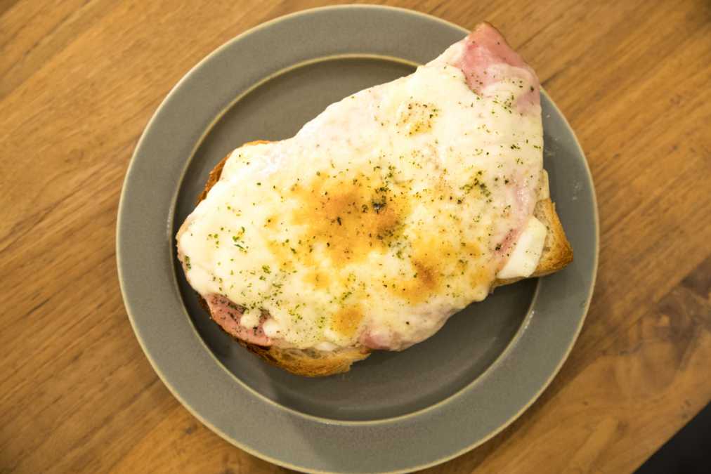 スイーツだけでなくフードメニューも豊富で、いつ訪れても満足させてくれるのが「ブリックレーン」の魅力。写真は一番人気の「クロックムッシュ」(594円)。フランスパン生地を使ったトーストは噛みごたえがあり、やみつきになる食感。上にのったとろとろなベシャメルソースとジューシーなハムが、パンの風味と相まってとてつもない口福感!
