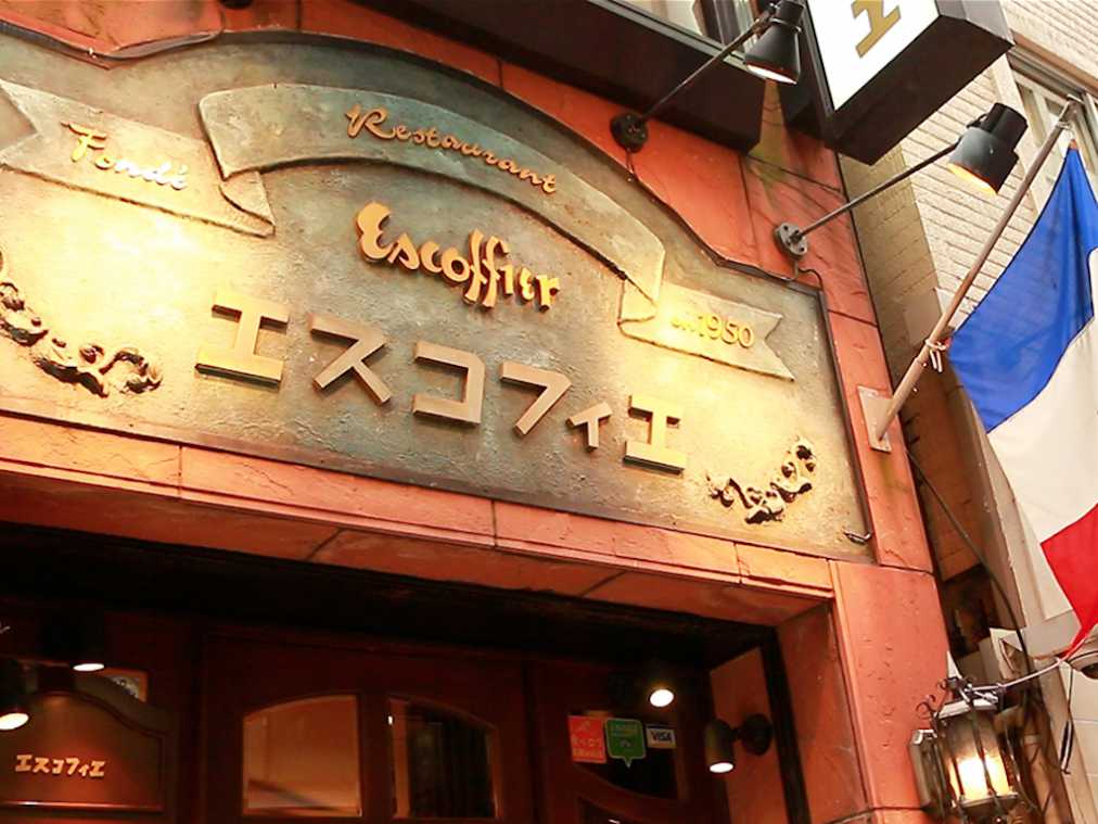 銀座5丁目にある「銀座エスコフィエ」は、創業1950年の老舗フランス料理店。レトロな外観が、その歴史を感じさせます。