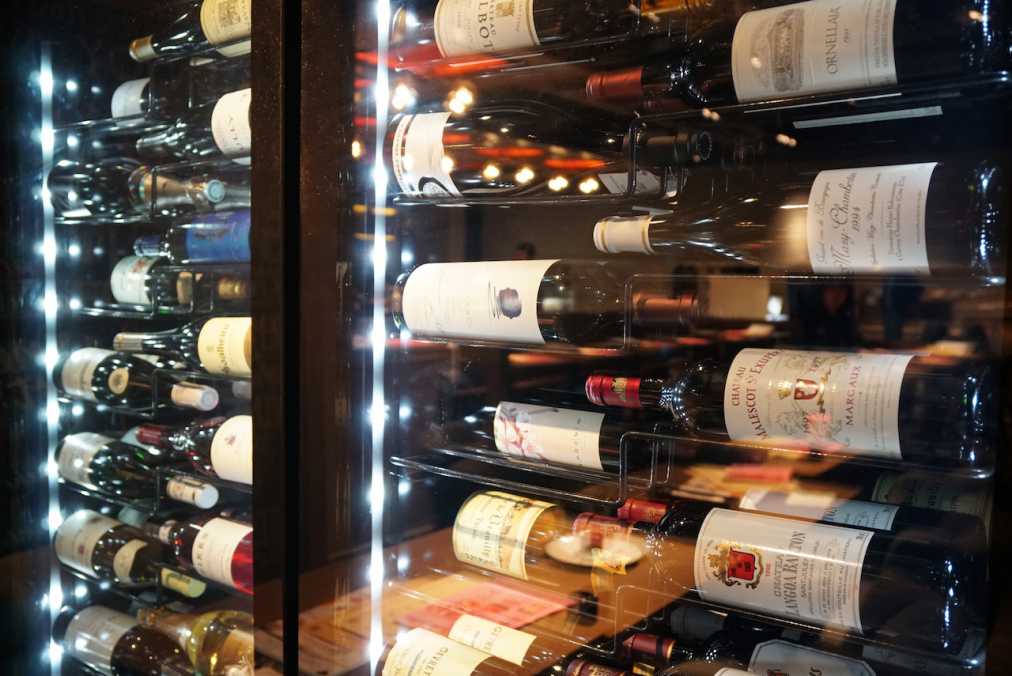 スイーツ店には珍しい、大型のワインセラーも完備。ワインと合うよう、食事系メニューにはチーズを使っているものも。