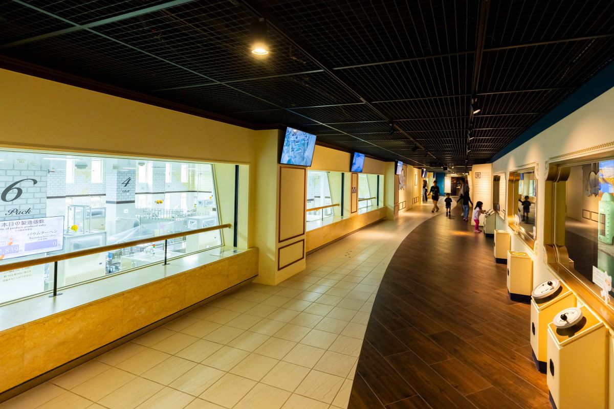順路に従って進み、「白い恋人」とバウムを実際に製造する様子が見られる「チョコトピアファクトリー(工場見学)」へ。おなじみの製品が次々と出来上がっていく様子に時間を忘れて見入ってしまいます。