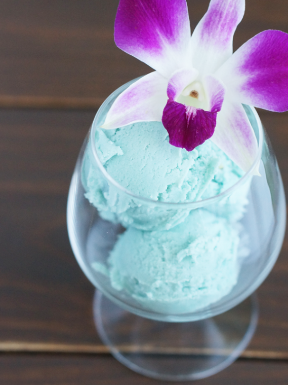 カシューナッツやアーモンドミルクをベースにしたアイスは、スッキリとした味わい。スーパーフードのカカオ豆を砕いたチョコチップの食感も、ミントのエッセンシャルオイルの香りも嬉しい!鮮やかなブルーはスピルリナで表現しています。