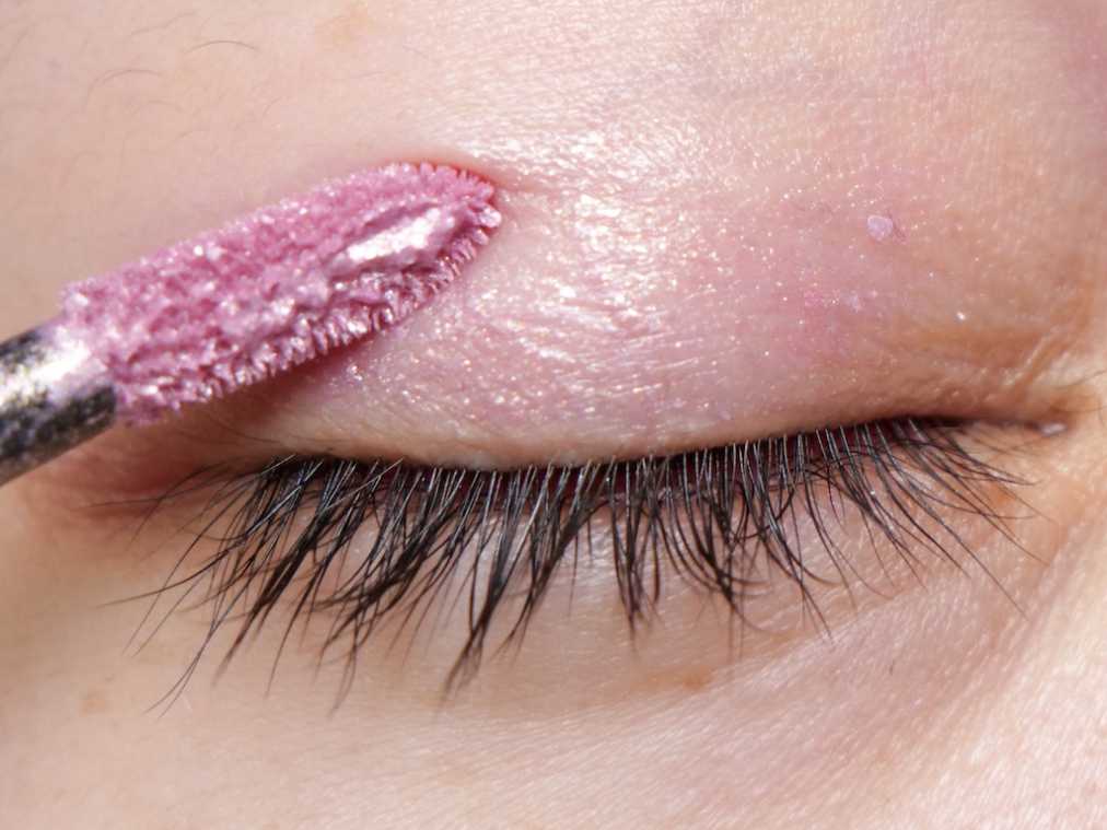 透け感のある大人可愛い目元はモーヴピンクを使う