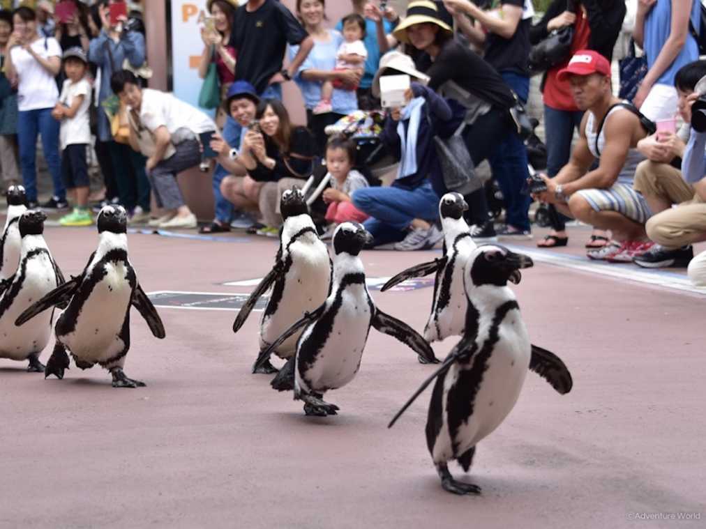 涼しい時間帯で本領発揮!?ヨチヨチ歩きがかわいい「ペンギンパレード」は、「フラワー通り」で17時から開催。全長50mのコースを散歩してくれる、約15分のパレードです。
