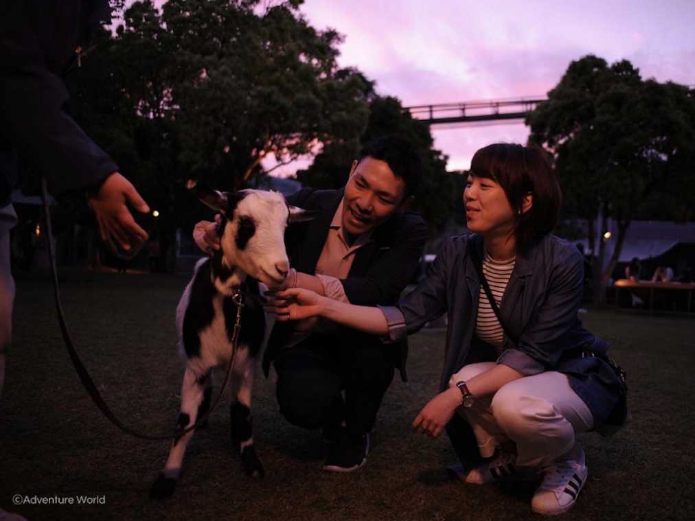 見るだけでなく、実際ふれあって癒されちゃいましょう。夜の「ふれあい広場」に動物たちが大集合。