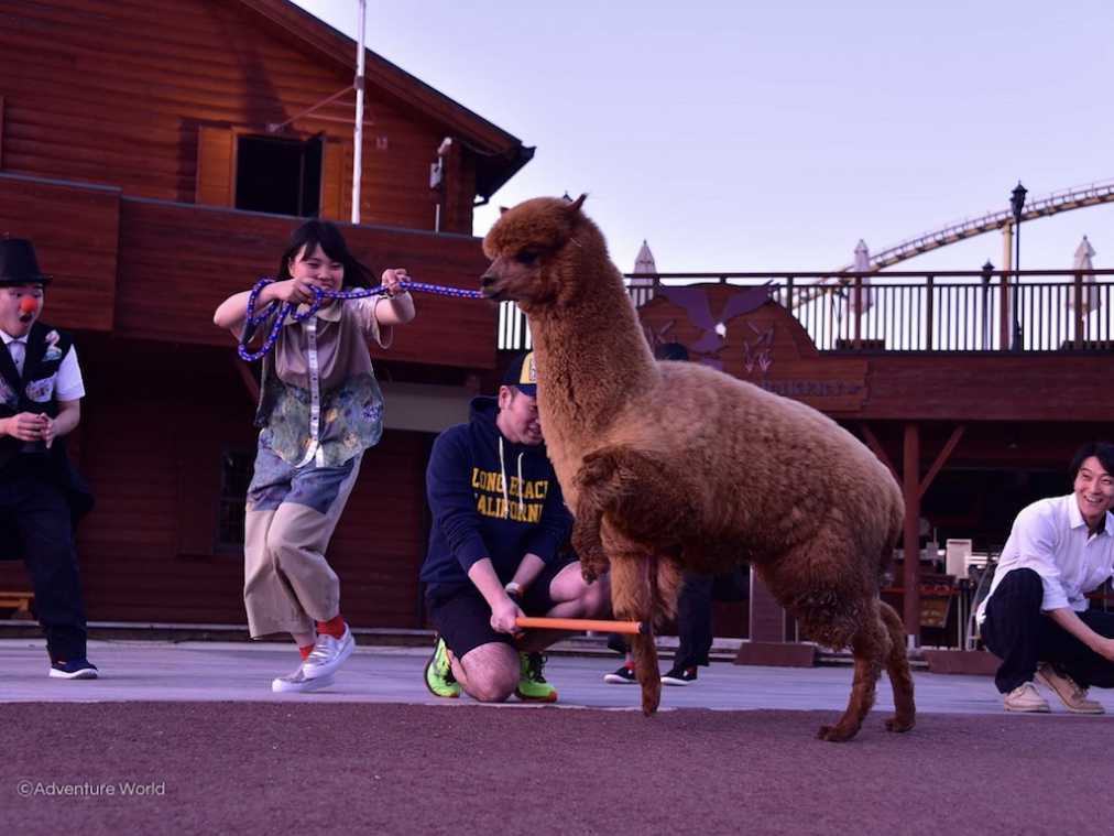 アルパカやミニチュアホースと一緒に写真撮影もできます。時間は18時30分~19時15分まで。