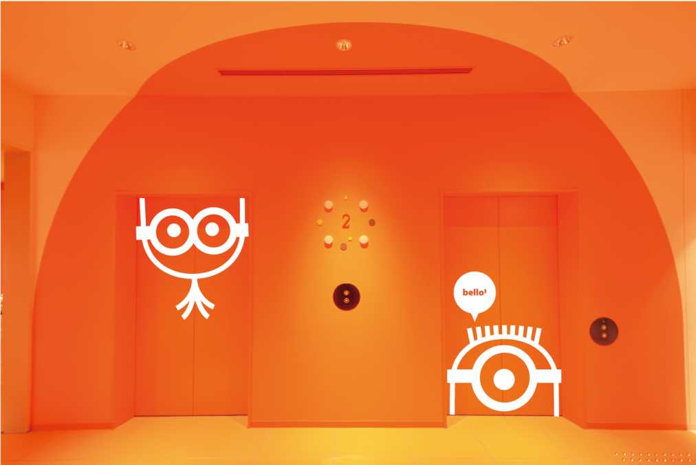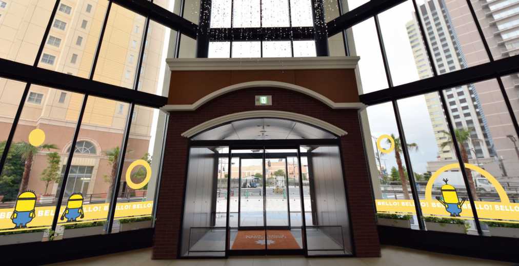 また、ガラスウインドーやエレベーターには後ろ姿やひょっこり顔を出す「ミニオン」たちがいっぱい。パークでの楽しさと興奮が、ホテル滞在中も続きます!