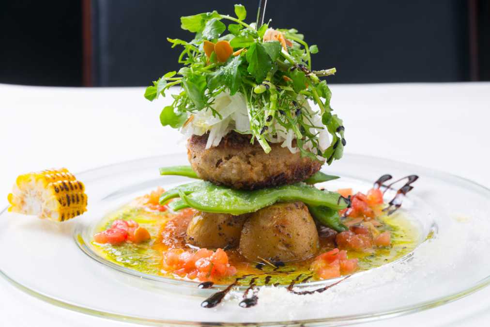 飛騨牛料理のおいしい店として人気のビストロ。オープン以来の名物メニュー「飛騨牛こだわりハンバーグ」(135g2300円)は、ジューシーな飛騨牛と一緒に採れたてのたっぷりの野菜とガスパチョソースが楽しめます。パリやフランス各地での修行経験もあるシェフが作り上げる鮮魚料理も自慢です。