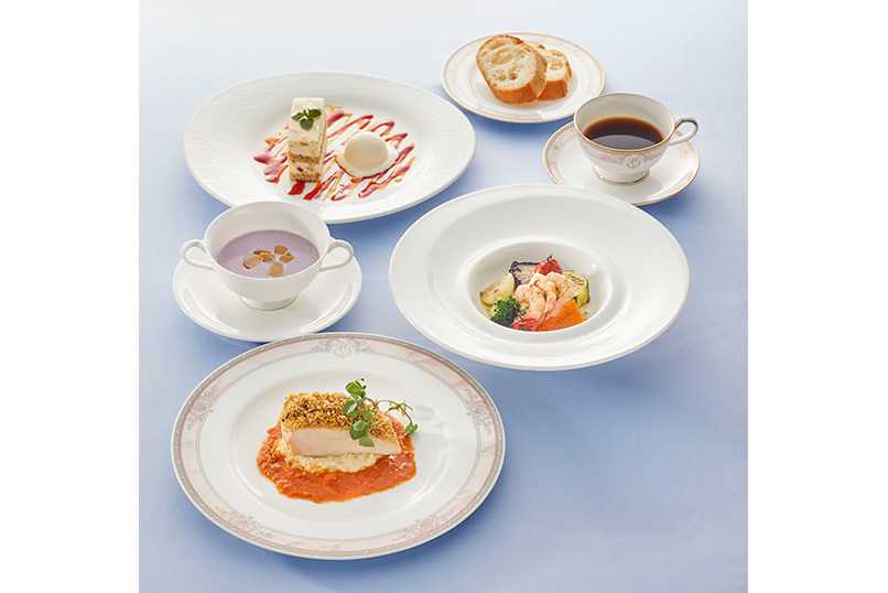 東京湾の大パノラマとともに楽しめるのが、本格的なフレンチコース料理。一緒にワインやビール、ソフトドリンクなどもいただけて、大満足の内容です。