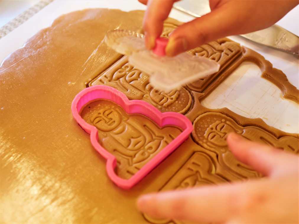 一枚一枚手づくりされる鎌倉店オリジナルの大仏ビスケットは、1日120枚限定。つなぎとなるバターや卵、乳製品などは使用していないそうで、焼き上がりの割れを防ぐために、ビスケットを7~8mmとやや厚めにしているのだとか。