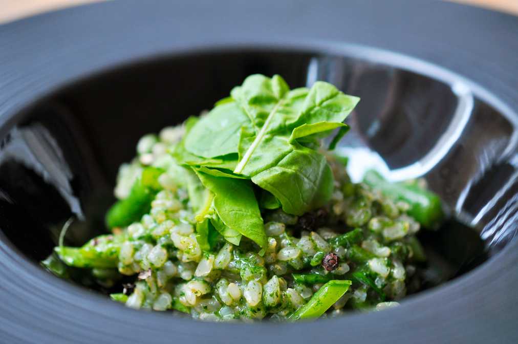 ほうれん草と玄米のリゾットは、しっかりと粒が立っていて食べごたえあり。おすましのだしは、鰹節からきちんととっていて、本来のおいしさが味わえます。