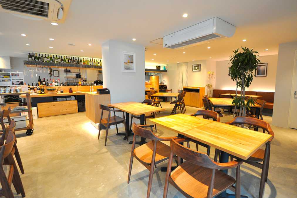 店内では、ゆったりと客席スペースがとられています。ウッディな家具でまとめられている、ナチュラルで居心地の良い空間です。