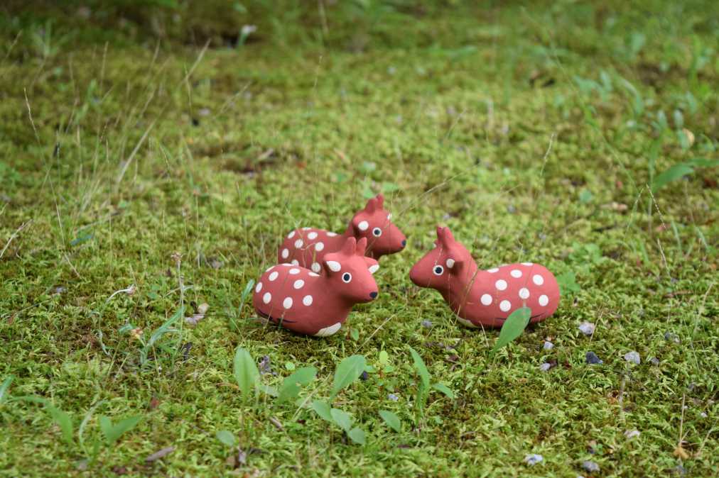 「神鹿張り子」(800円)は、開運のお守り。手のひらサイズでまあるいフォルムがかわいく、デスクや玄関に飾れば癒されそうです。