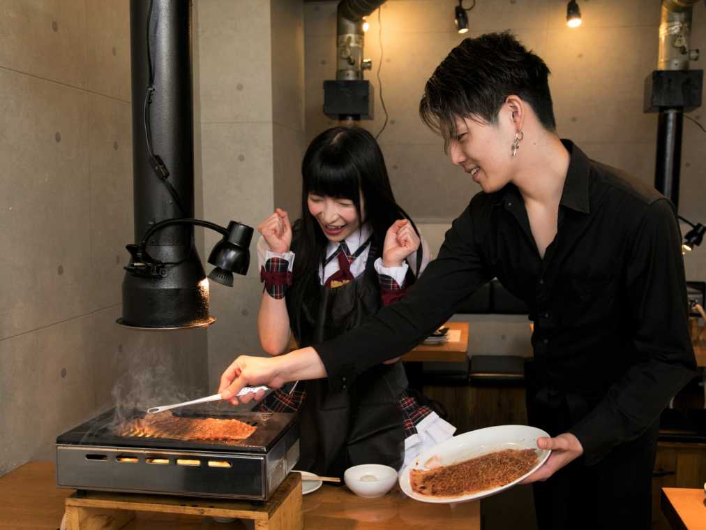 「ホルモン松田」の魅力といえば、絶品の極上A5ランク和牛が食べられるだけではないんですよ!お肉の特性を知り尽くしたスペシャリストが、一枚一枚目の前で焼いてくれるんです。