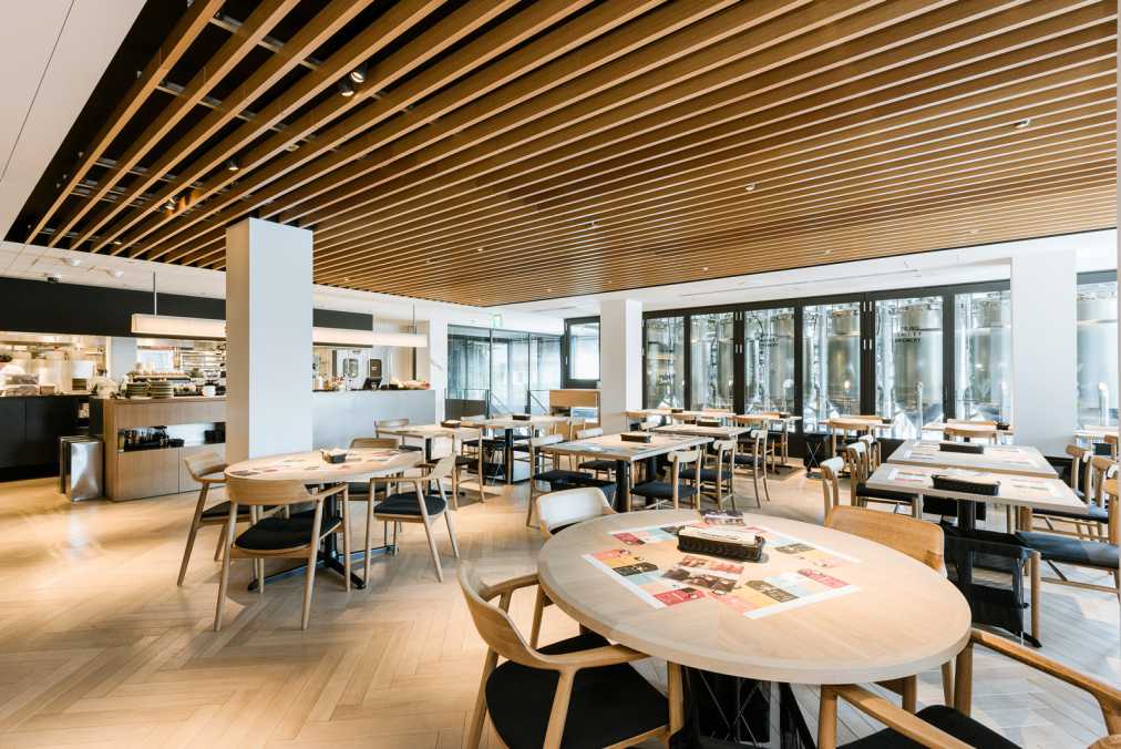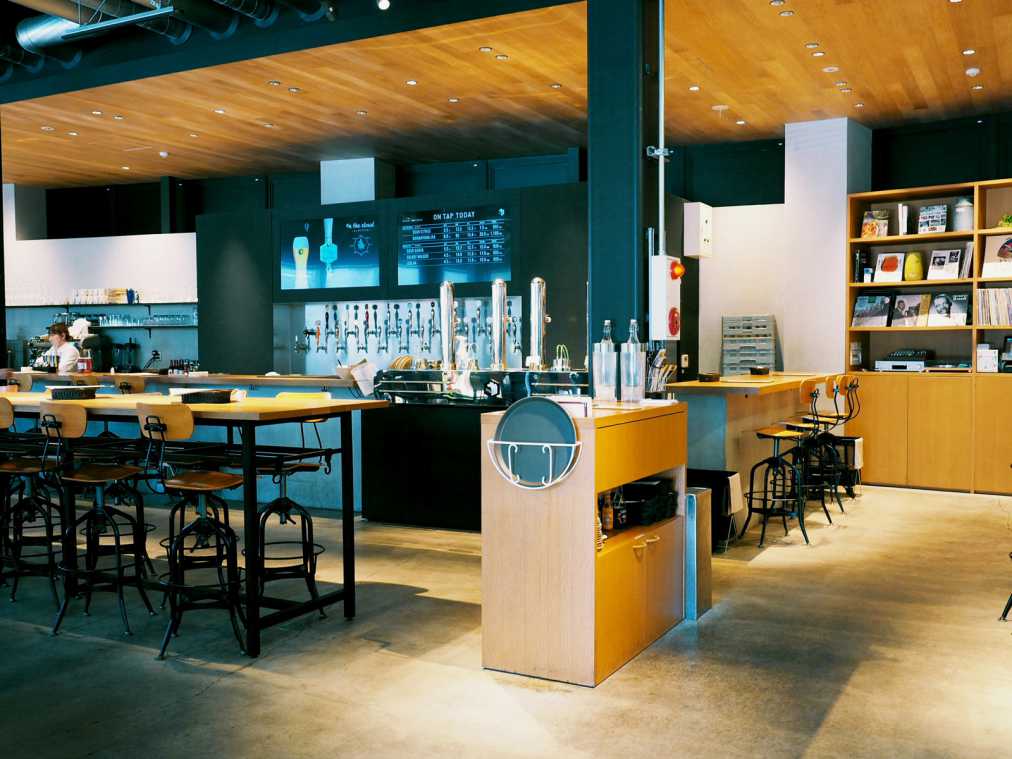 代官山駅から4分ほど歩いた場所に位置する「SPRING VALLEY BREWERY TOKYO」。一歩店内に入ると、天井が高く広々とした空間が広がります。シックなブラック、グレー、そして木材で統一された店内は、とってもおしゃれ!