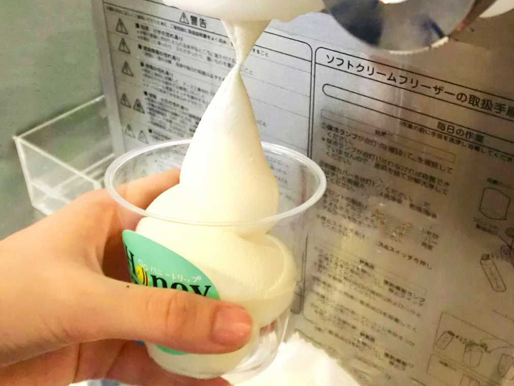 東京ドームがある後楽園駅や春日駅からほど近くに「Honey Trip」はあります。SNSでは「点滴ジュース」の店として話題になっていますが、オーガニック牛乳で作る“ソフトクリームの専門店”というのがメインの顔です!