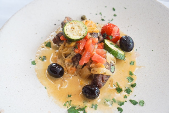 メインは牛タンのソテー 地中海風 パプリカズッキーニ、オリーブでクリームソース。牛タンのソテーって意外と新鮮、クリームソースもさっぱりとしていて牛タンによく合いました。
