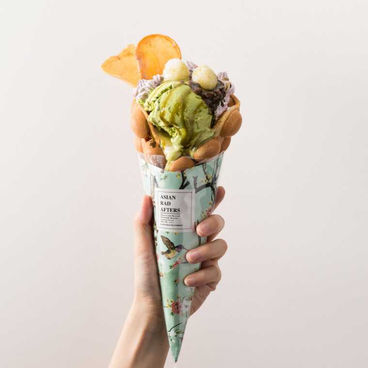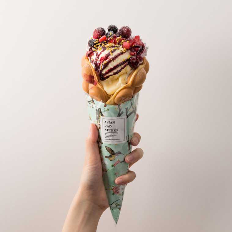 いま海外で人気のバブルパッフル。泡のようなぽこぽこの形がかわいいワッフルです。ボリューミーなトッピングと天然のハーブティの色素で色付けされたカラフルなクリームの組み合わせがインスタ映え間違いなし!オープン前から人気インスタグラマーの注目を集め、オープン後は連日完売となっています。