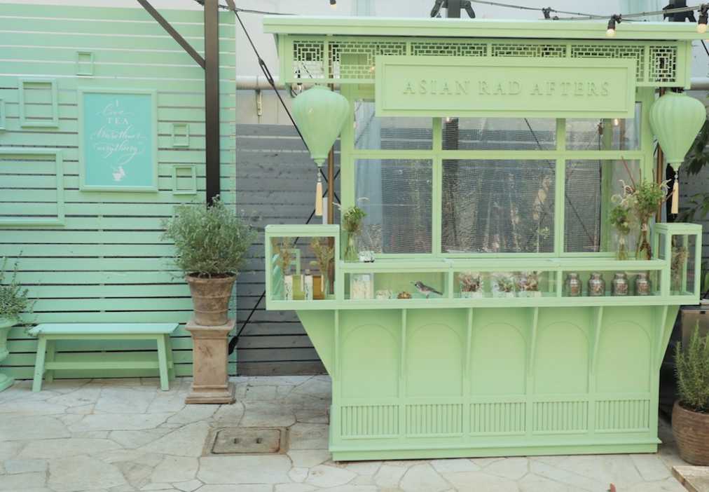 アジアの屋台をモチーフに、ブランドのイメージカラーのラッドグリーン一色に塗られたフォトジェニックなティースタンドは、「ASIAN RAD AFTERS」イチオシのフォトスポット。