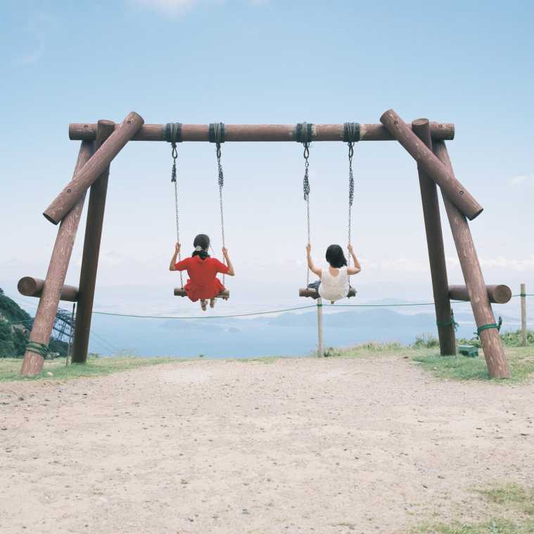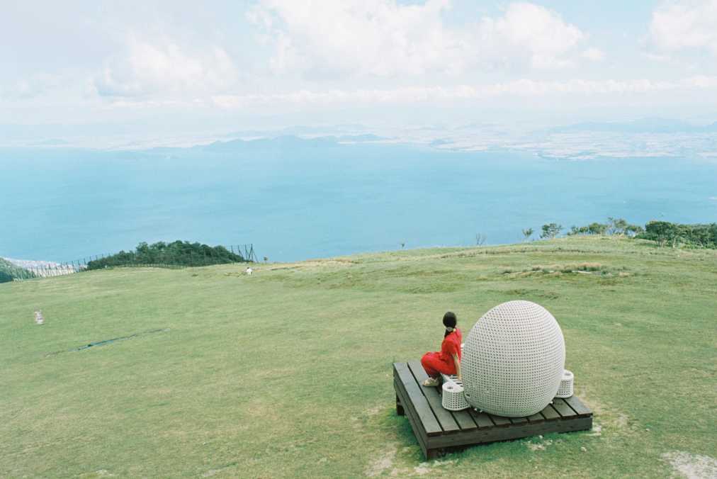 蓬莱山側の頂上にはCAFE360というビュースポットがあり、無料で自由に利用できるプレミアムシートもあります(快晴日にしかご利用いただけません)。このメロンのようなシートで、ゆっくりとくつろぐのもいいですね。