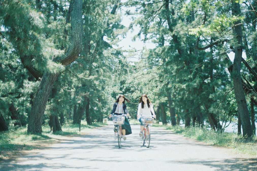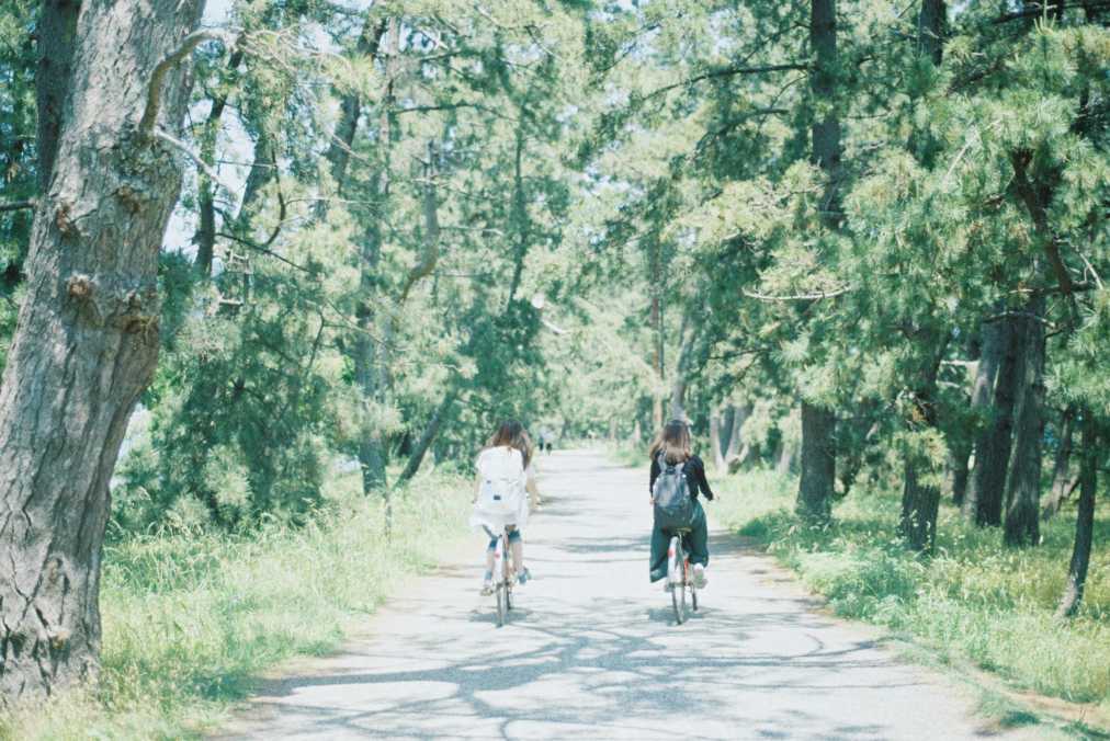 天橋立の橋に見える部分を歩いて渡ると、片道1時間ぐらいかかるのですが、歩いているとあちこちにレンタサイクルがあります。3時間で500円ぐらいが一般的。この松林を自転車で通り抜けるのがとても爽快で気持ちいいのです。片道30分ぐらいで向こう岸にたどり着きますが、寄り道しながらゆっくりと行きたいものですね。