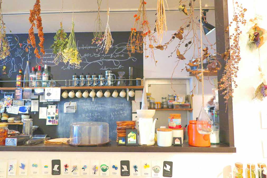 カウンターを合わせて全部で13席の店内は、色鮮やかなドライフラワーがいたるところに飾られています。