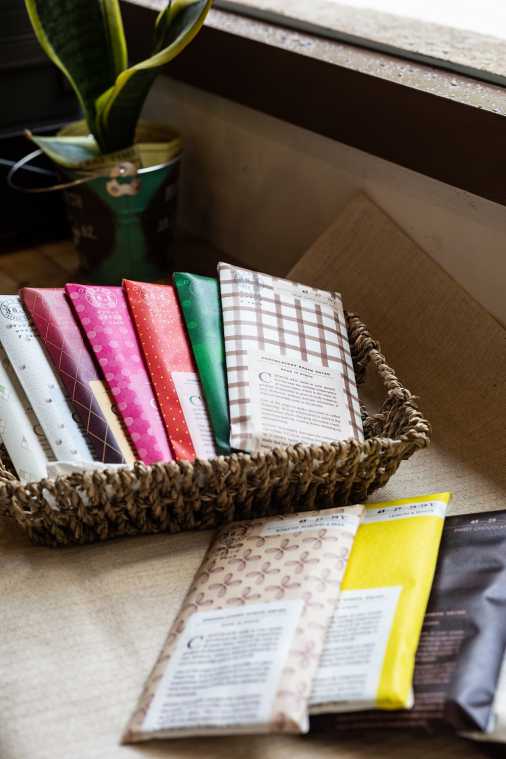形状はシンプルな板チョコ。フレーバーに合わせた包装紙で包まれていて、バレンタインなどの贈り物にも人気だとか。形はスタンダードでも味に特別感があるので、さりげないプレゼントにちょうどいいですね。