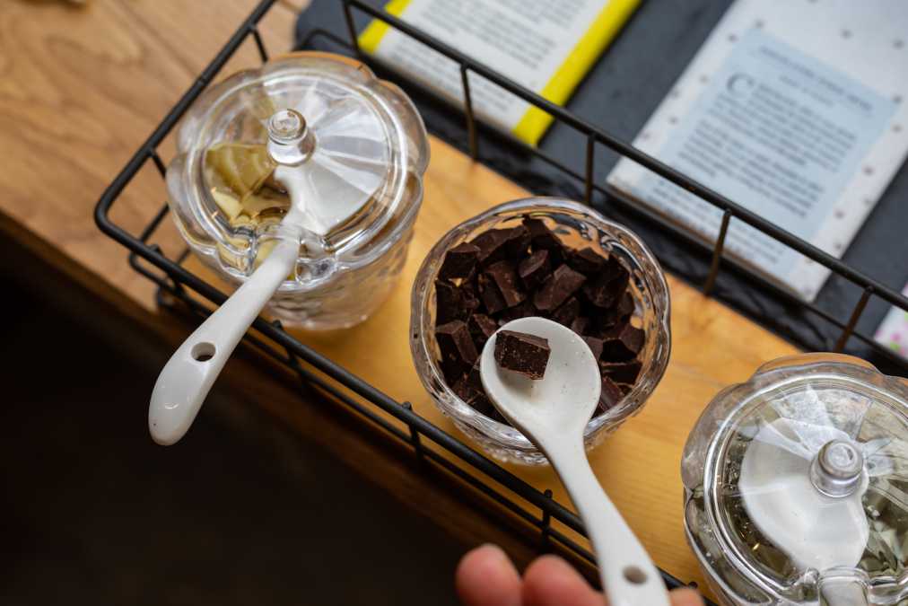フレーバーは現在21種類。レモン&ホワイトチョコ、さくら&ホワイトチョコ、スイートチョコ/カカオ50、スイートチョコ/カカオ60…と、たくさんある商品は、すべての味を試食することができます。