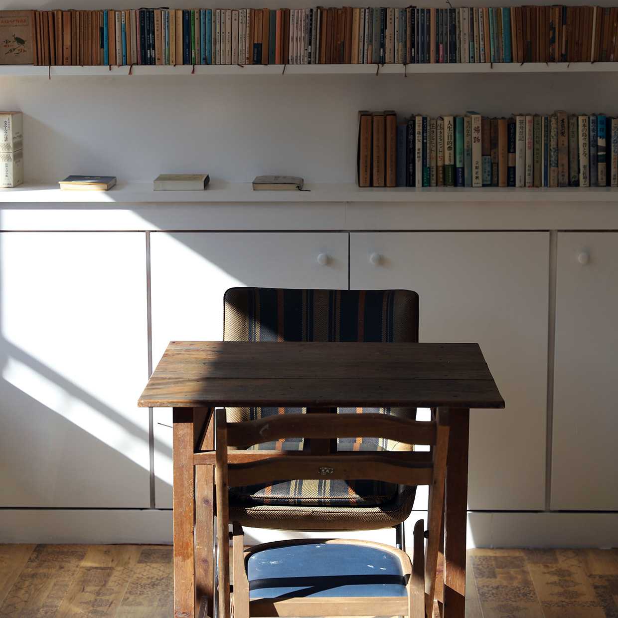 手が届く範囲に本があり、なおかつ優しい自然光が射すため、席を立つのが億劫になるほどの心地よさです。