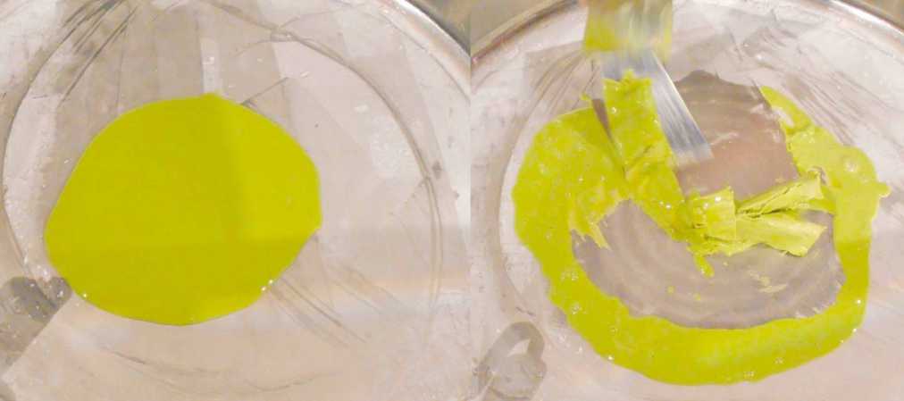 アイスになる原料はソフトクリームの素。まずはこれをプレートの上に流し込み、固めていきます。プレートの温度はマイナス17度をキープしており、常に冷えた状態なのであっという間にアイスに変身しました!