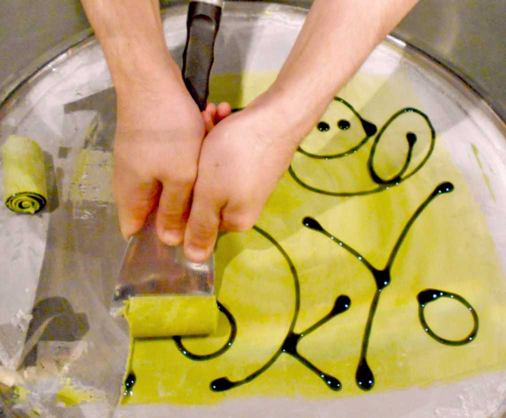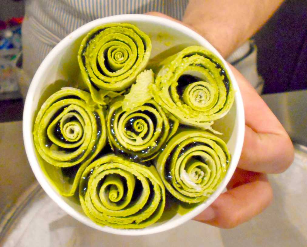 プレートの上でアイスが踊る!?くるくる巻かれたフォトジェニックなロールアイスクリーム