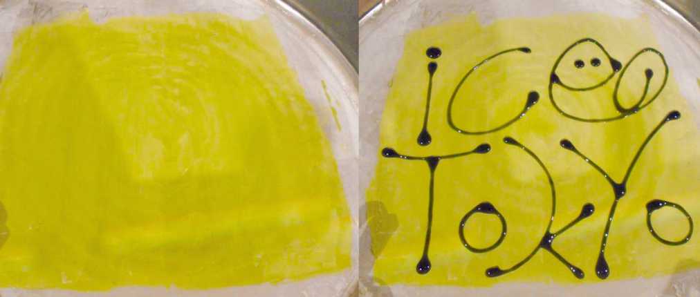 次にアイスをヘラで薄く伸ばしていきます。この日は特別にアイスの上に「ice Tokyo」という文字を書いてくれました。お店この文字パフォーマンスができる人は2人しかいないそうです。