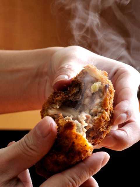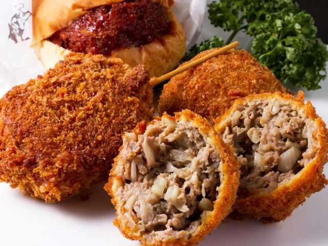 1日3000個は売れるというメンチカツを求めて連日行列となっている銘柄牛専門店。選び抜いた雌の国産黒毛和牛を1頭丸ごと買い付けるというこだわりが、ひと味違うメンチカツを生み出す秘密。元祖丸メンチカツ(1個240円)や激うまコロッケ(1個150円)など、夕飯に買って帰るもよし、吉祥寺散策のおともにできたてアツアツを食べ歩きするもよし、その味を確かめるためぜひ行列に並んでみて!