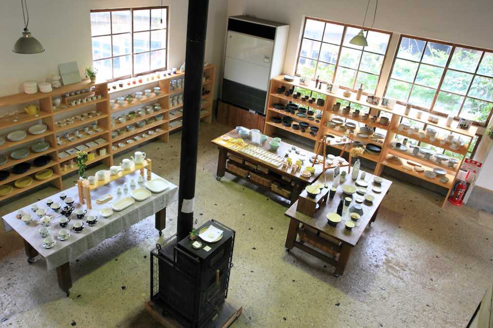 ドアを開ける前からワクワクしてくる木造のかわいいいパステルカラーのお店。製陶所の出荷事務所として使用されていた「南倉庫」を改装、器を通じて波佐見ならではのモノづくりを紹介するお店として、2011年にオープンしました。