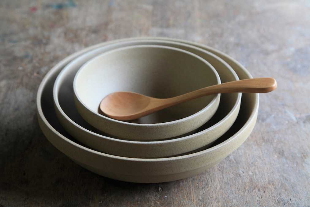 少し渋めの「HASAMI PORCELAIN」シリーズ540円~(写真のボウルは小さい方から1620円、2160円、3240円)。マットな風合いと渋めの色合いが大人女子の心をとらえて離しません。