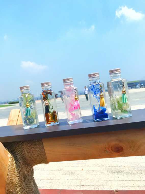 7月28日(土)~8月26日(日)は、世界の花々を瓶に詰めた「ハーバリウム(※写真上)」(1500円~)作りや、天然水晶をたっぷり“メモリージャー”に入れた「ハピネスボトル(※写真下)」(2000円)などのワークショップ実施。