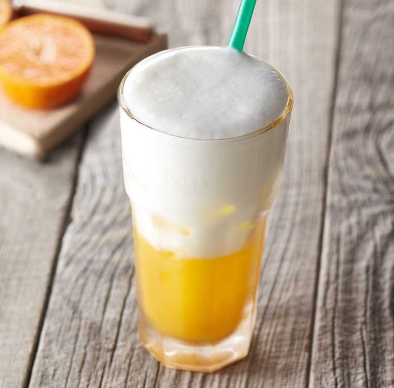 また同じ日に、柑橘をベースとしたフルーティな果汁とフォームミルクを合わせた「アイス フルーツカプチーノ」Tall480円 も発売。