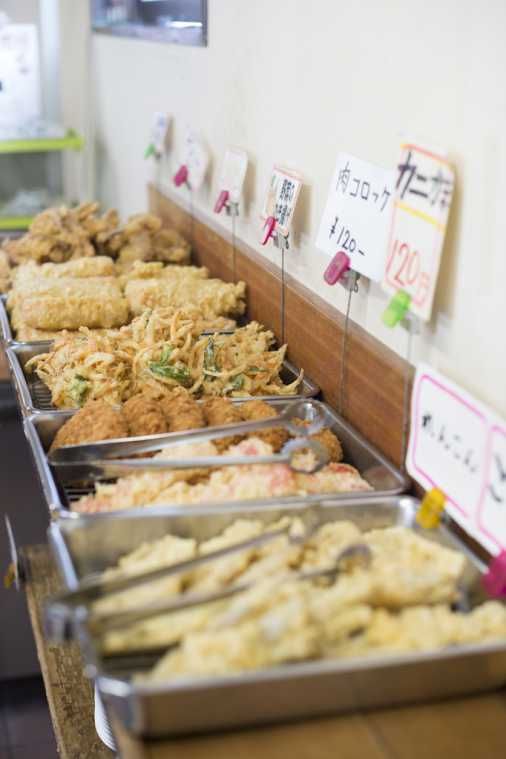 うどんのトッピングは天ぷらが定番。ゲソ天にちくわ、野菜のかき揚げなど、好みに合わせて選びましょう。昼過ぎだと売り切れていることもあるので、早めに訪れるのがベター。おでんやおにぎりといったサイドメニューを置いている店も多いです。