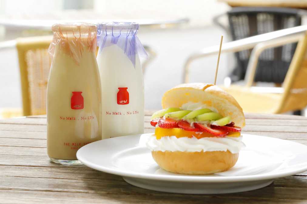 100年以上続く老舗牛乳メーカー、棚橋牧場が手がけるブランドMILK SHOPの牛乳が、東京初進出!じっくりと焼きあげられたプレーンとチョコチップ味の2種類のスコーンは、牛乳との相性が抜群。「ハニースコーン&牛乳 / コーヒー牛乳」750円。※1日限定20食