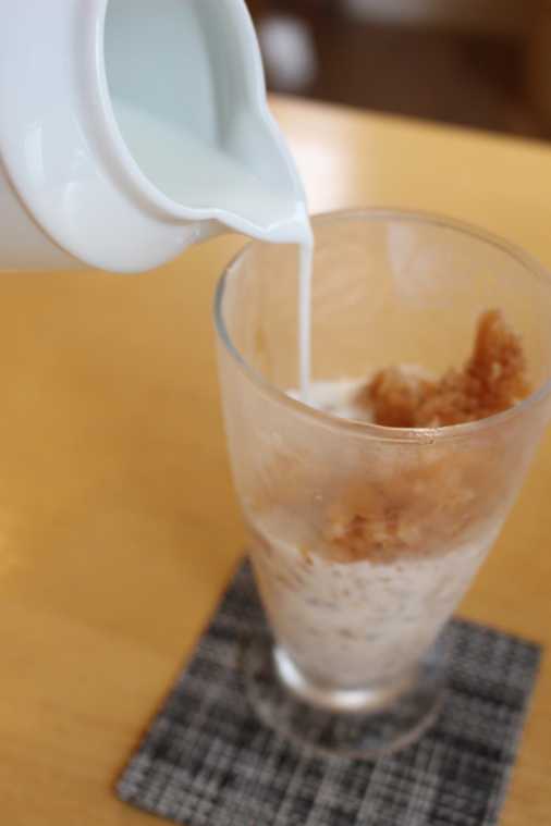 半分ほど食べたところで、ピッチャーで添えられたミルクを注ぐとキャラメルミルクティーに変身!2度楽しめるのが嬉しいですね。濃厚な甘さがクセになるスイーツドリンクです。